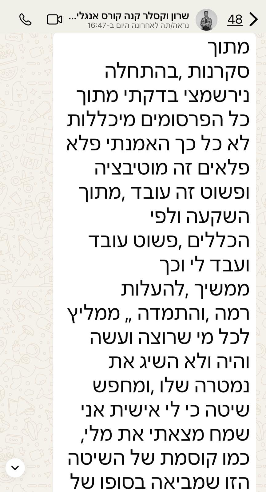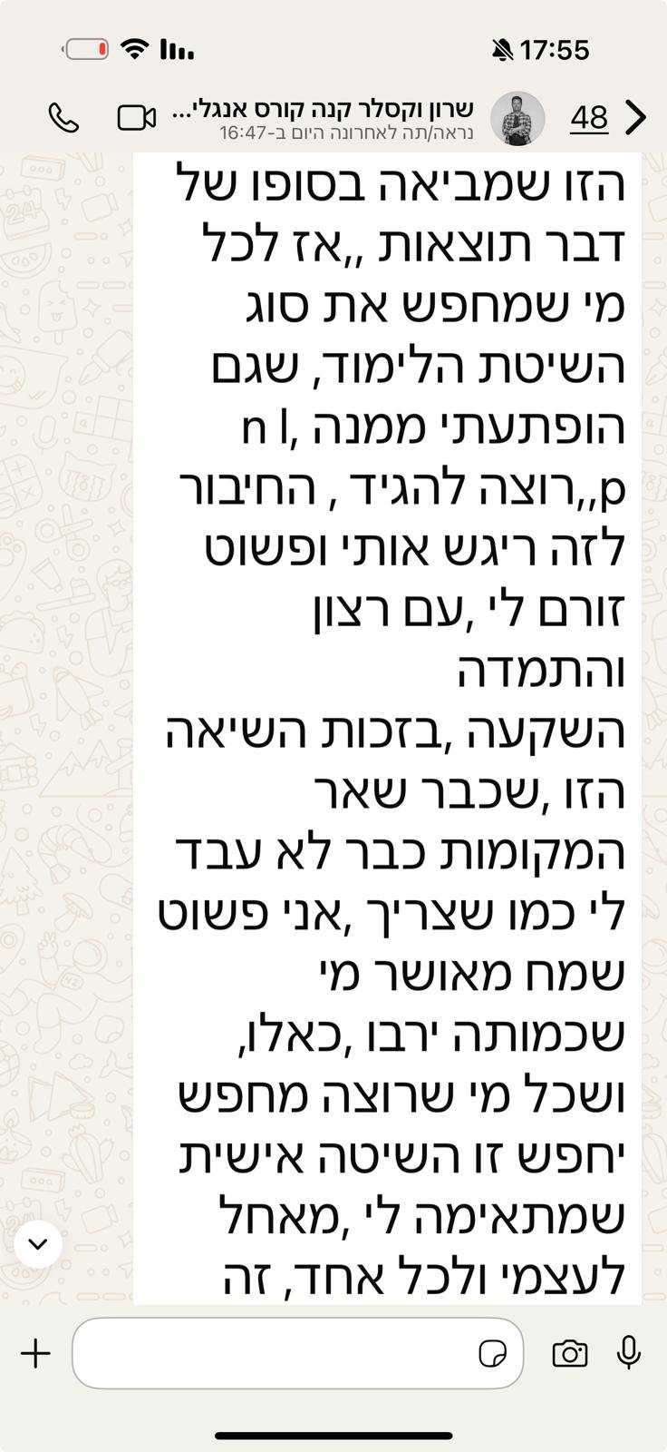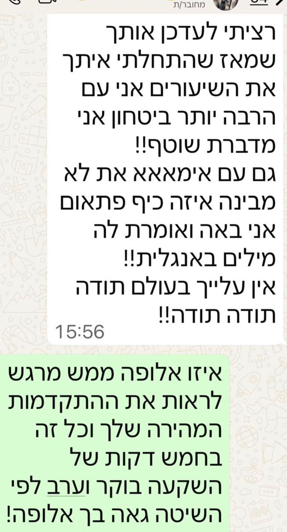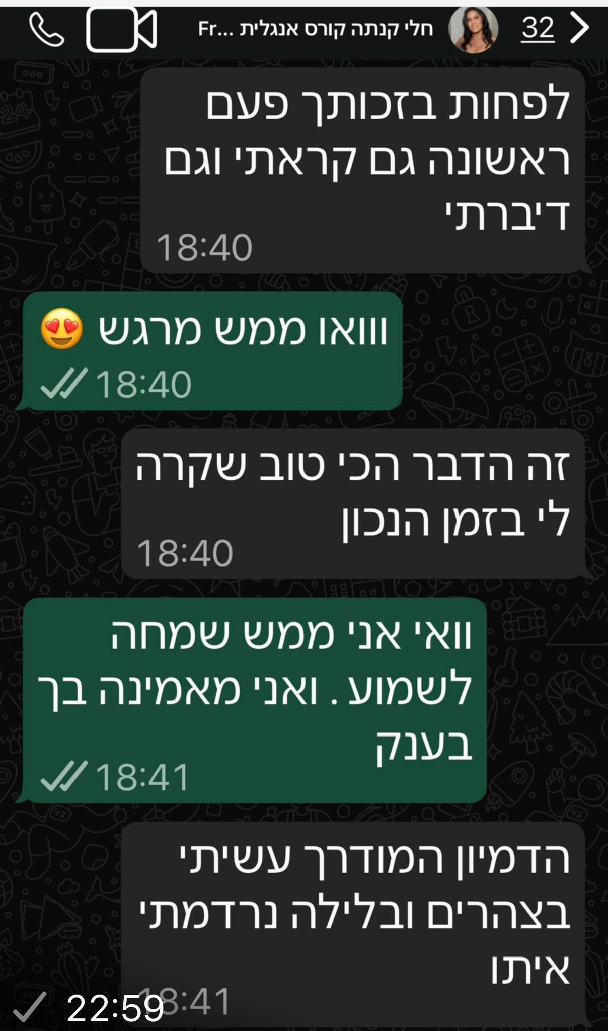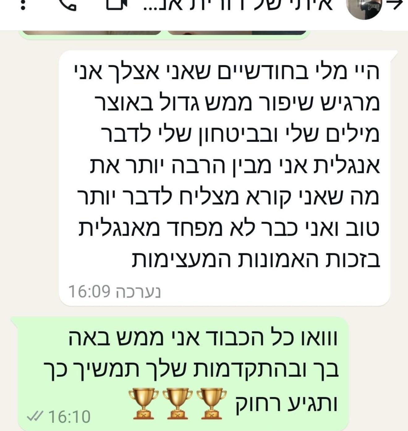 אנשים חוסכים כסף שנים לטיולים בחו"ל רק כדי לגלות שהם לא מסוגלים .חוסר היכולת לדבר אנגלית זו ה"נכות השקטה" שאנשים סוחבים שנים. המוח מבין אבל הפה נסגר לא בגלל חוסר ידע. בגלל חוויות ישנות שנצרבו עמוק בתת המודע והפכו לחסם וכשמשחררים את החסם, השפה מוטמעת בקלות הדיבור יוצא טיבעי ופשוט והפחד נעלם