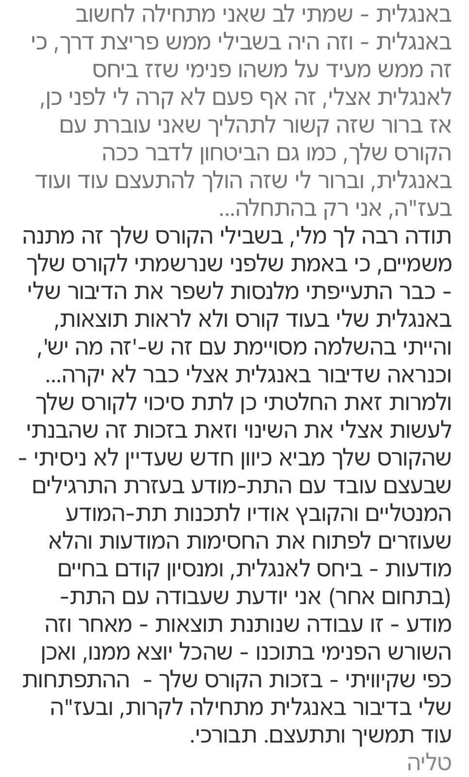עוזרת לאנשים לדבר אנגלית בביטחון אחרי שנים של תקיעות