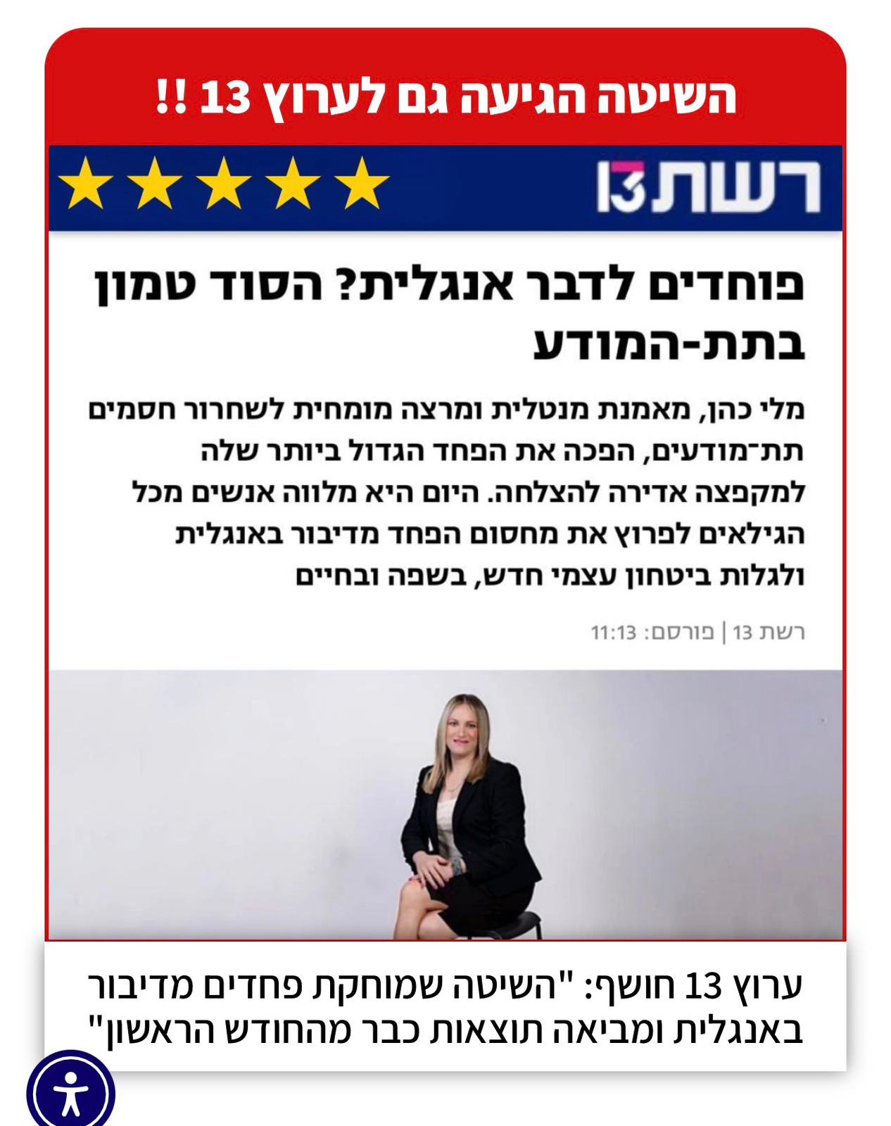 השיטה, שכתבו עליה בערוץ 13, משלבת עבודה מנטלית על תת-המודע עם תרגול שפה במצבי חיים אמיתיים.